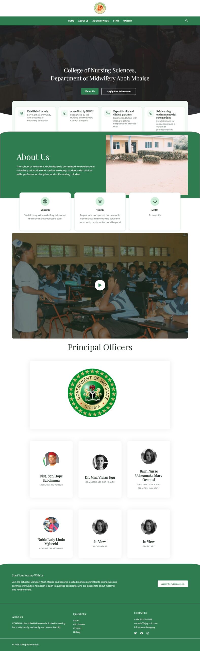 An academic website for CONSAB, focused on delivering quality midwifery education with discipline and life-saving clinical training.