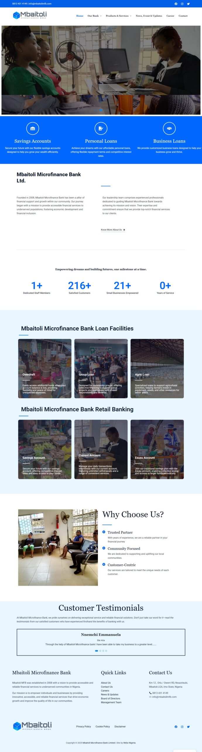 A corporate website for Mbaitoli Microfinance Bank, designed to present financial services with clarity, trust, and accessibility.