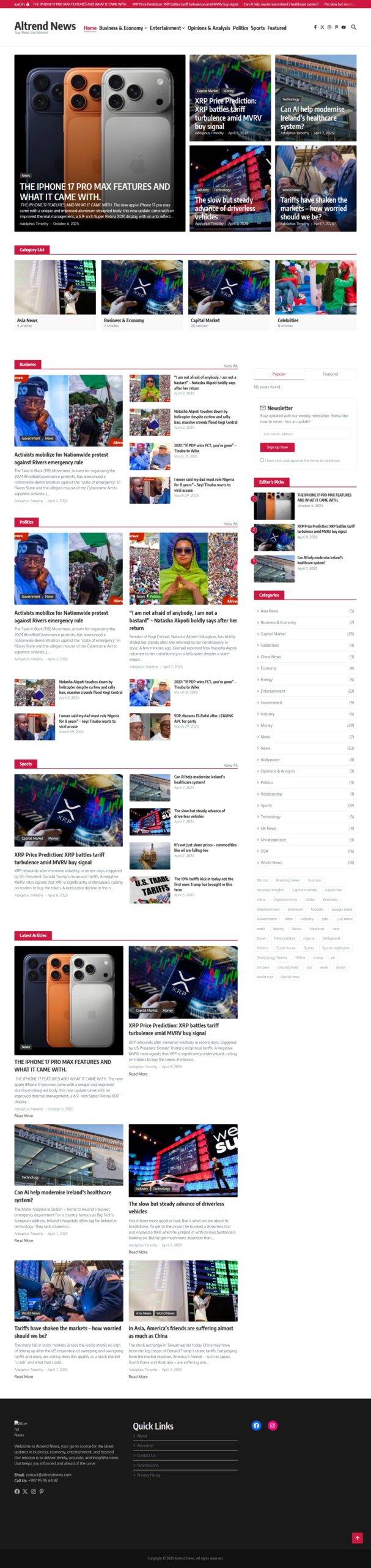 A modern news platform built for Altrend News, delivering trending stories with a clean, fast-reading experience.