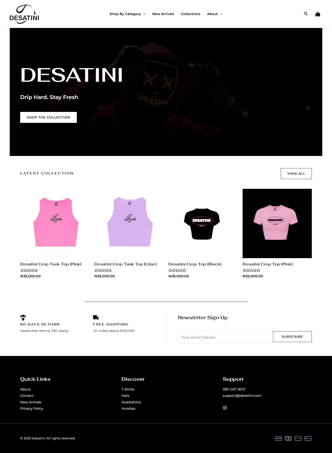 A minimalist fashion ecommerce site for Desatini, designed for smooth browsing and effortless product discovery.